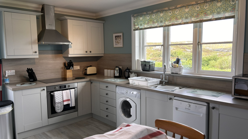 The croft house with its semi-detached self-catering was built in 1998 on a family croft that is set in one of the most beautiful areas of Lewis. The self-catering facilities sleep 4 and include a double and twin bedroom, bathroom with shower, fully-fitted kitchen/ dining area with electric cooker and dishwasher and a large and very comfortable lounge with open fire. There is a separate driveway for parking to the side of the property and just beyond the gate is the Valasay Bridge. This historic footbridge spans the Kyles of Valasay and the lower part of the bridge is over 100 years old. The waters that surge through on an incoming or outgoing tide have led this area to be designated a Marine Special Area for Conservation and the habitats created by this are perfect for a range of marine invertebrates and seaweeds. The area is also home to many fish, seals and the elusive Otter. At any time of year you will see Grey Heron and Cormorant fishing the area and a variety of shore birds including Curlew, Oystercatcher and Sandpiper during the summer months.