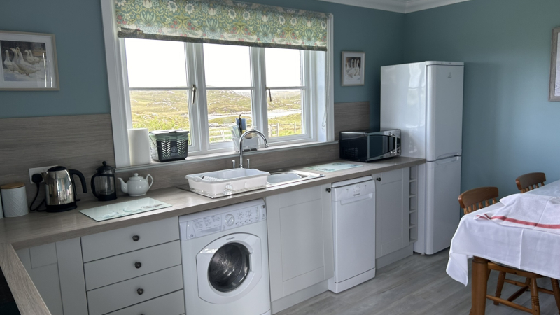 The croft house with its semi-detached self-catering was built in 1998 on a family croft that is set in one of the most beautiful areas of Lewis. The self-catering facilities sleep 4 and include a double and twin bedroom, bathroom with shower, fully-fitted kitchen/ dining area with electric cooker and dishwasher and a large and very comfortable lounge with open fire. There is a separate driveway for parking to the side of the property and just beyond the gate is the Valasay Bridge. This historic footbridge spans the Kyles of Valasay and the lower part of the bridge is over 100 years old. The waters that surge through on an incoming or outgoing tide have led this area to be designated a Marine Special Area for Conservation and the habitats created by this are perfect for a range of marine invertebrates and seaweeds. The area is also home to many fish, seals and the elusive Otter. At any time of year you will see Grey Heron and Cormorant fishing the area and a variety of shore birds including Curlew, Oystercatcher and Sandpiper during the summer months.